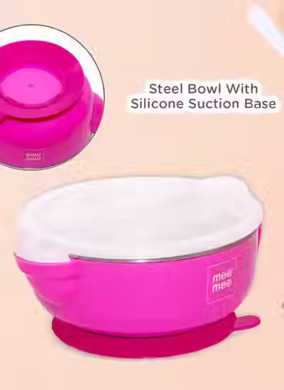 Mee Mee Stay Warm Baby Steel Bowl (Pink)
